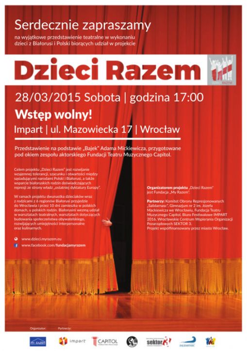 7 dni później, 28 marca 2015 roku o godzinie 17:00 w Imparcie przy ulicy Mazowieckiej 17 we Wrocławiu kulminacja projektu! Młodzi Białorusini wraz z polskimi rówieśnikami wystąpią w spektaklu teatralnym powstałym specjalnie na tę okoliczność.